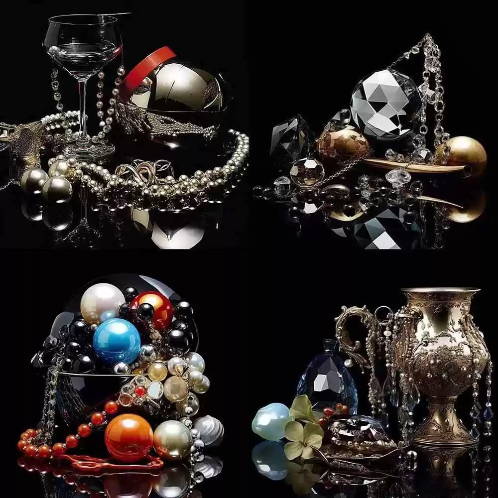463个Midjourney珠宝摄影提示词-涵盖戒指,项链,耳环,手链,宝石和奢侈配饰