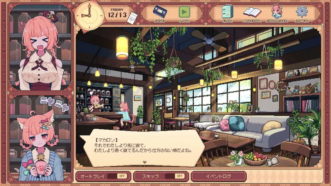玛卡珑:活泼可爱的猫耳妹妹,负责甜点制作,是店里的开心果。